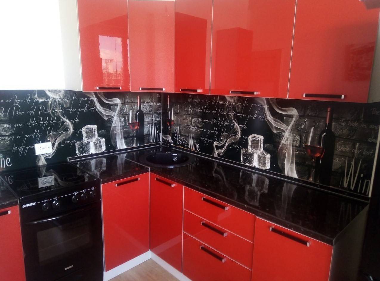 Черный фартук тоже уместен. Но только, если у вас просторная кухня. В противном случае весьма вероятен дискомфорт, так как красный в сочетании с черным буквально съедает все свободное пространство вокруг.