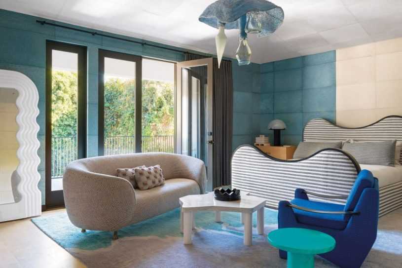 - Модерн требует плавных форм, а цветовая гамма обивки может быть выполнена в ярких или пастельных тонах. Плетеные изделия также актуальны в такой обстановке, они добавляют легкости и воздушности.