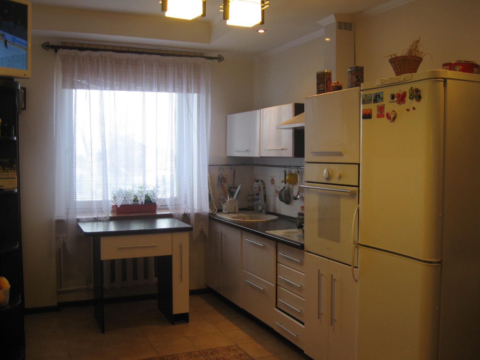 Все габаритные предметы интерьера располагают в дальнем углу. Самый крупный предмет в кухне – холодильник. И если нет возможности внести его на лоджию или в коридор, то его также рекомендуется расположить в дальнем углу. Выбирайте модель узкую и высокую. Кухонная техника должна быть встроенной.