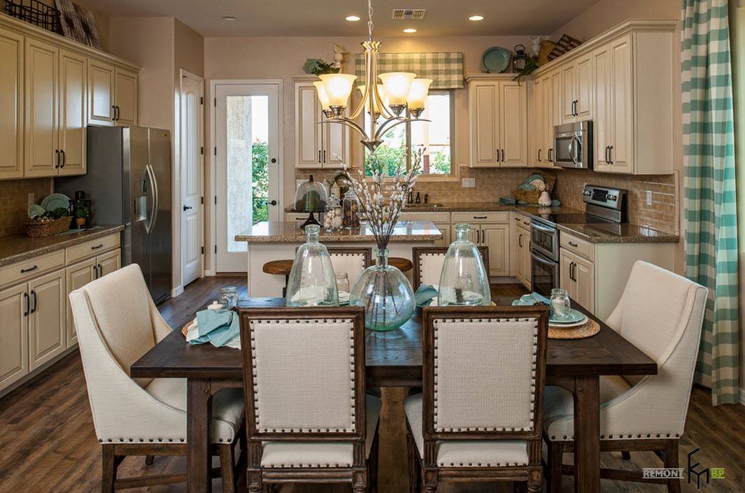- Дизайн кухонного гарнитура должен гармонировать с общим стилистическим оформлением комнаты. Среди актуальных сегодня:
