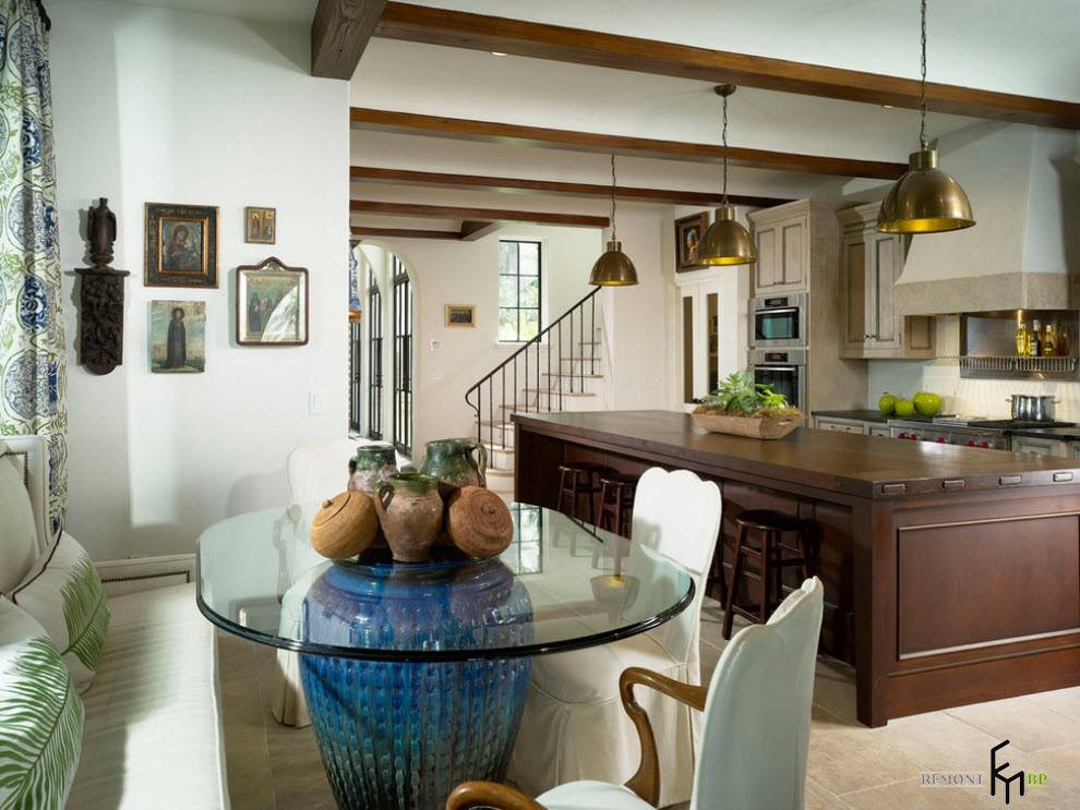 Выбирая мебель, учитывайте, что разновидностей овальных и круглых столов огромное множество. Дизайнеры советуют принимать в расчет площадь кухни, так как обеденная зона должна занимать треть помещения. Если место ограничено, то лучше подыскать раскладную модель.