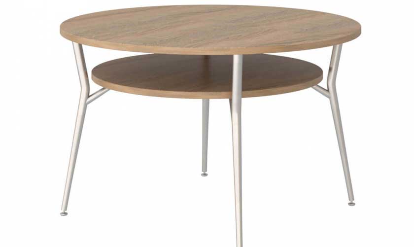 Маленькие столы круглой формы на ножках из нержавеющей стали превосходно вписуются в малогабаритные кухни. Собственно ножки выполняют акцент на хрупкости и нежности стола. Он зрительно создает комнату больше и свободнее.