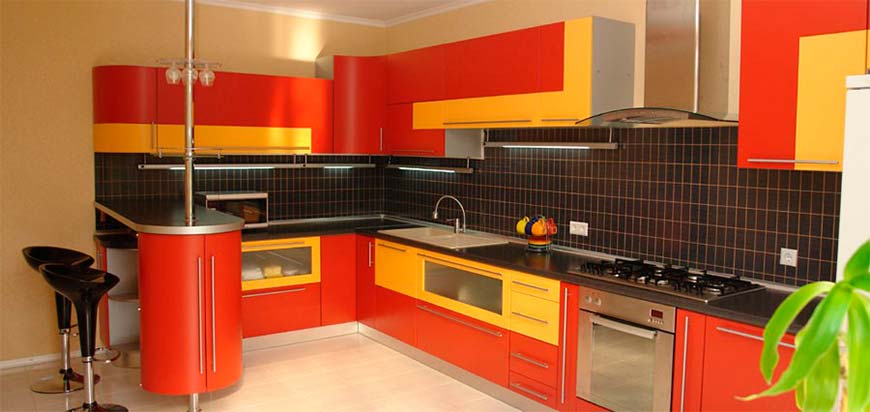 При оформлении кухни в этом стиле стоит учитывать оптические свойства красного цвета. При разработке дизайна кухни красные оттенки лучше использовать только как акцент на определенных элементах, чтобы не перегружать пространство.
