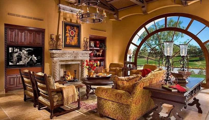 - частым элементом обстановки считается камин, сложенный из грубо обработанного камня, дополненный коваными деталями;