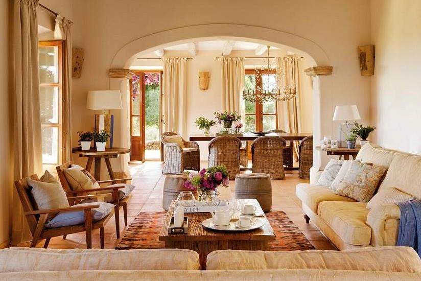 Очень актуально смотрятся различные арочные конструкции из гипсокартона, дерева и металла. Данный способ декорации считается исконно испанским. Самыми доступными, конечно, являются гипсокартонные элементы, в этом случае открывается множество способов для различных вариаций с их количеством и формой. Украсить такие арки можно с помощью привнесения кованых элементов и этнической росписи.