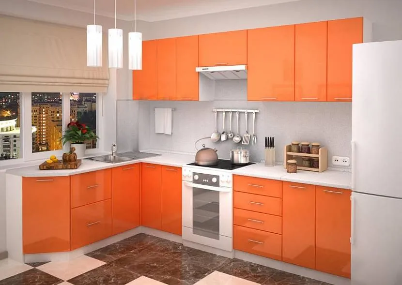 Светло-оранжевая кухняИсточник stroy-podskazka.ru