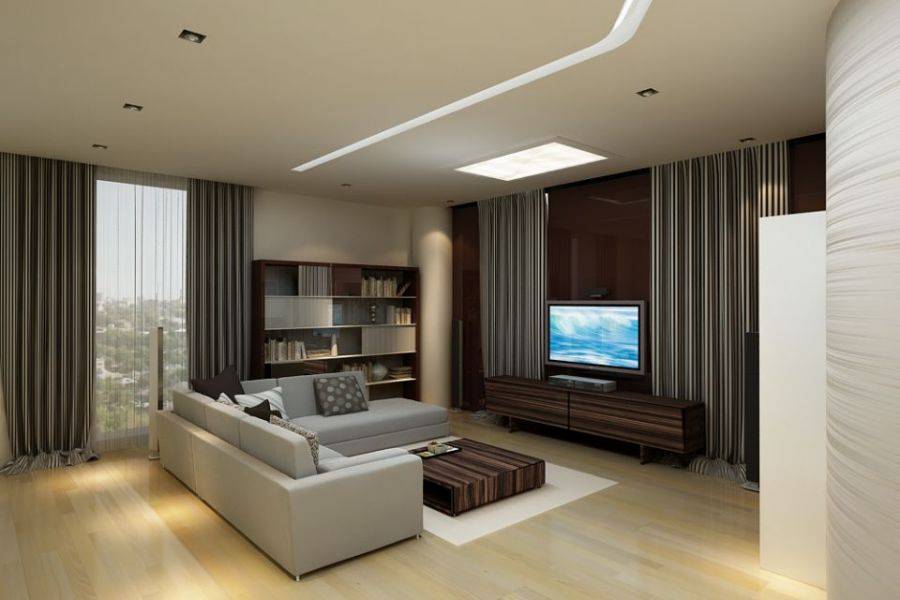 В целом, конечно же, стоит сказать, что общие рекомендации невозможно давать всем и сразу, ведь все зависит от отдельно взятого случая, формы комнаты, вкуса хозяина. Именно поэтому дизайн комнаты обещает быть оригинальным и неповторимым. Главное условие при оформлении такой гостиной: функциональность, отсутствие мебельного излишества, свободная центральная зона комнаты. Предпочтительнее, чтобы мебель была расположена по периметру комнаты, кроме этого можно использовать пространство не только по его горизонтали, но и вертикали, применяя дополнительные уровни.