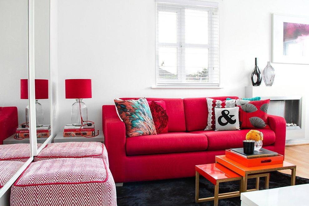 - модерн и хай-тек сочетают насыщенный красный с классическими черным и белым;