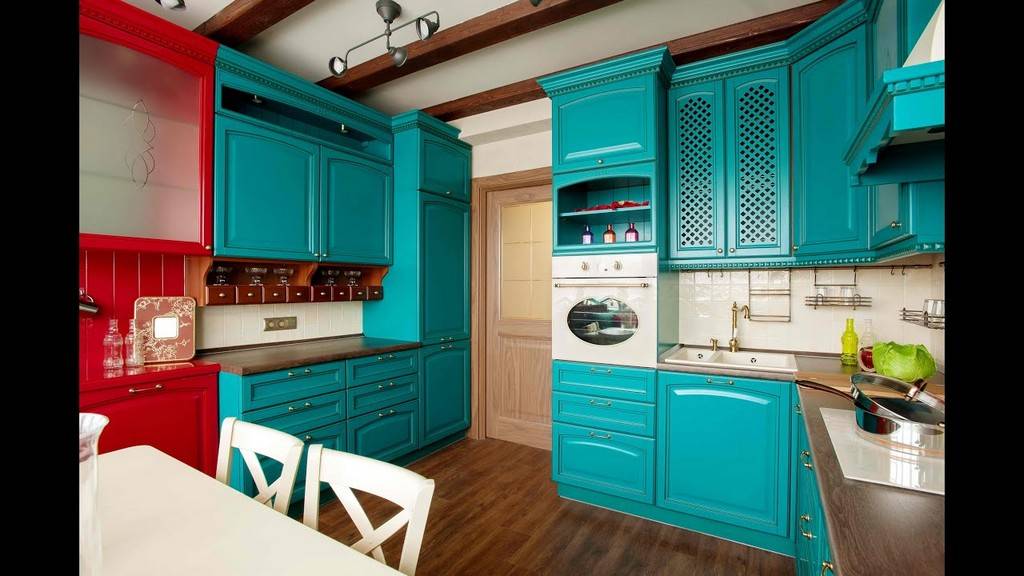 Голубой, салатовый и белый цвета в интерьере кухни