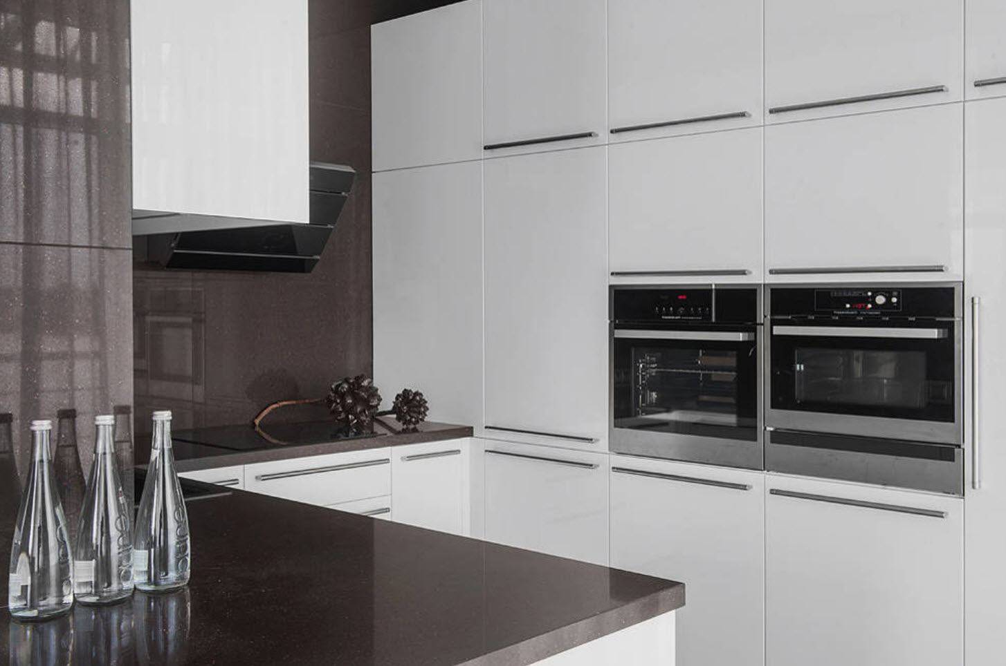 Расстояние между шкафами, которые находятся друг напротив друга обеспечьте примерно чуть более метра, чтобы удобно было их открывать. Слишком большое расстояние, которое составит более двух метров, нецелесообразно, кухня хоть и должна быть просторной, но лишние телодвижения ни к чему.