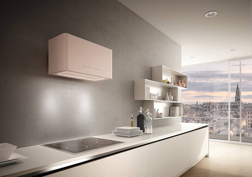 Кухня без навесных шкафов требует щепетильного внимания при выборе вытяжного зонта