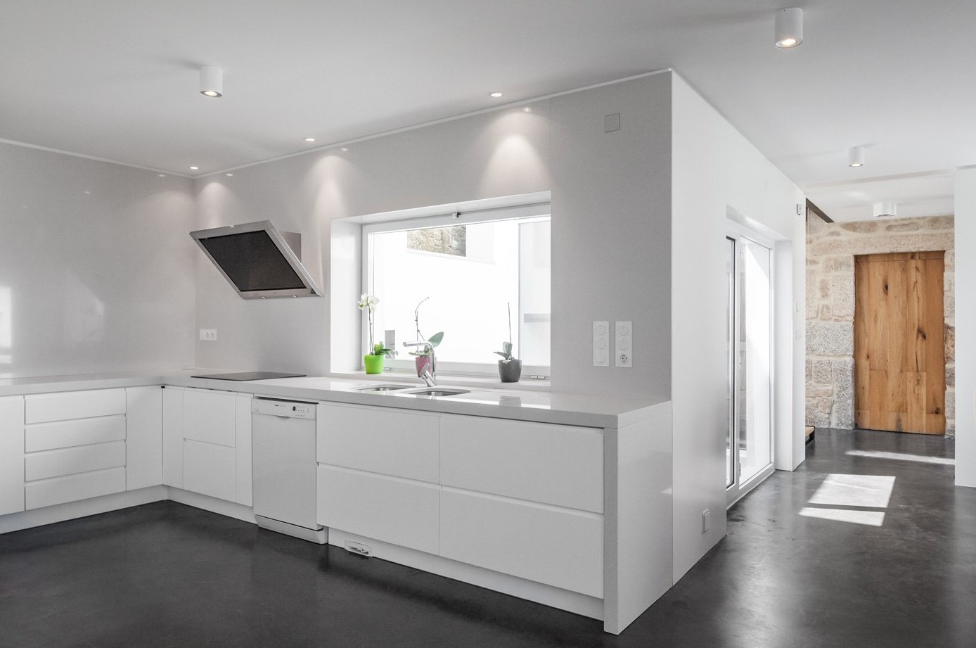 Если лофт впечатляет акцентами и масштабом, то минимализм — правильной геометрией и проработкой каждого элемента в комнате. Одноярусные кухни как будто созданы для таких аскетичных современных интерьеров, где есть необходимый простор и нет ничего лишнего. Доминирующий цвет — белый. Выступает без компаньона либо аккуратно разбавляется нейтральным серым.