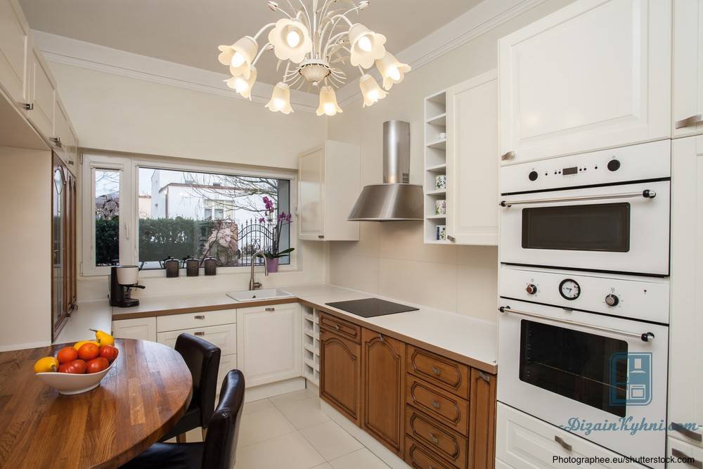 Например, если кухня расположена в узкой вытянутой нише, примените линейную или П-образную меблировку без верхних шкафов. Заменить шкафы можно открытыми полками.