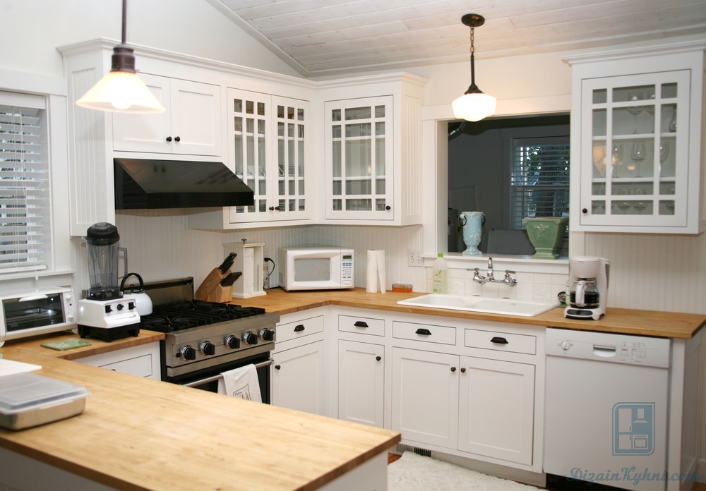 Дизайн кухни в частном доме с двумя небольшими окошкамиДва окна, который разделяет угол на кухне, может объединить вместительный диванчик.