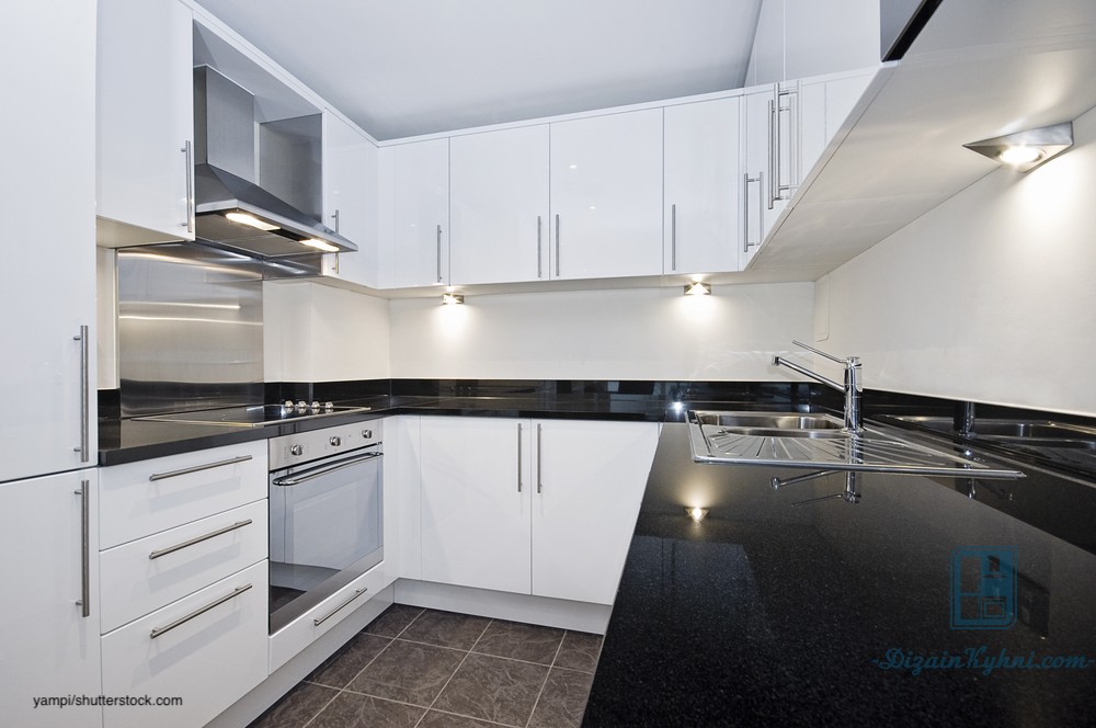 Угловая компоновка больше подходит для прямоугольных помещений. У нее есть ряд плюсов – доступность всех элементов рабочей зоны, компактное расположение отсеков для хранения, возможность установки большой раковины в углу.