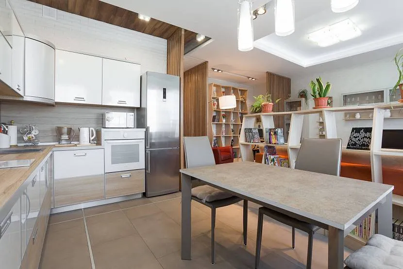 Прежде чем начать ремонт, необходимо хорошо продуманное проектирование. Без изучения плана квартиры не обойтись. Нужно вычислить несущие стены. Когда все данные собраны, пора начинать продумывать оформление. Можно пойти и радикальным путём: помимо сноса стены перенести газовые и водопроводные трубы в более удобное место. Любые действия такого рода требуют обязательного согласования со специальными службами. Когда улажены и бюрократические вопросы, можно разделить помещение на кухонную зону и гостиную. Пропорции разделения зависят от количества домочадцев, их привычек и стиля жизни. Небольшой семье, ведущей спокойный образ жизни, вероятно, не потребуется большая кухня.