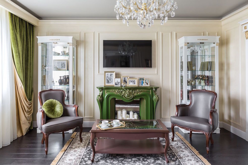 Фальш-камин – альтернативный бюджетный вариант, имитирующий настоящий камин. Подойдет для тех, кто желает создать самобытную атмосферу в гостиной с минимальными денежными затратами. Фальш-камины в интерьере гостиной выполняют исключительно декоративную функцию и не обогревают помещение, зато смотрятся очень эффектно на фото и вживую.