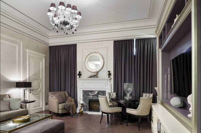 При выборе отделки домашнего очага надо руководствоваться особенностями стиля всего интерьера гостиной: