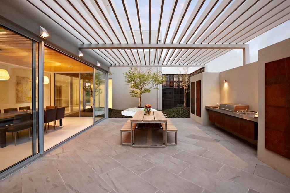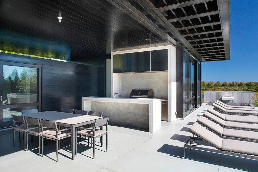 Кухня бывает открытая, полуоткрытая и закрытая. Первые два варианта больше подходят для южных регионов или в качестве летней кухни. Закрытой, наоборот, можно пользоваться круглый год — в этом и есть основное преимущество.