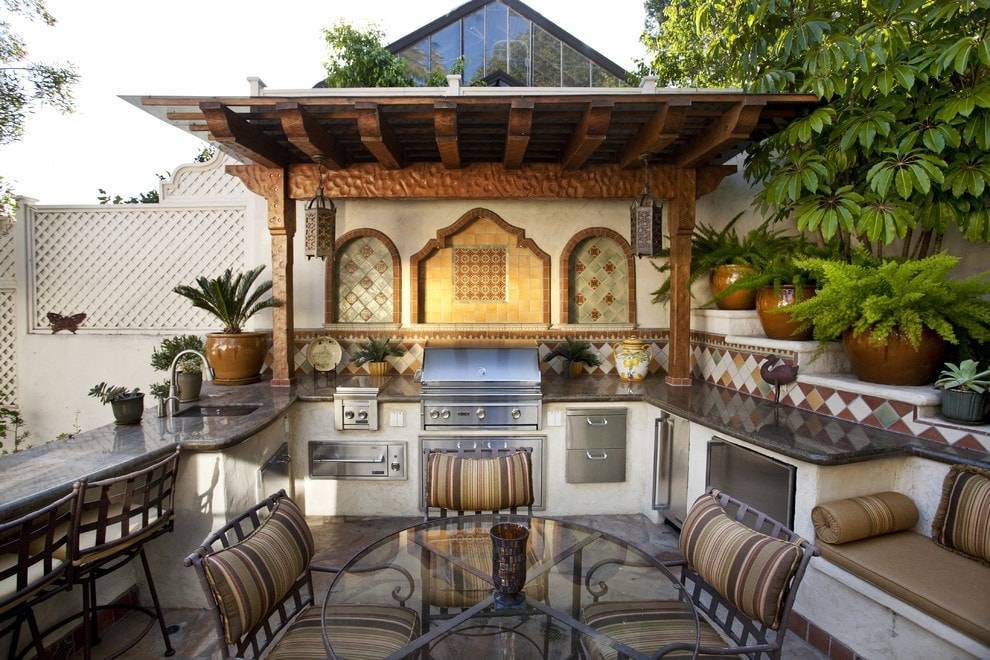 Также очень важно, если сооружение будет стоять на солнце, наличие потолка или прокладочного слоя под кровлю. Иначе в жаркую погоду даже открытая кухня будет напоминать жаровню