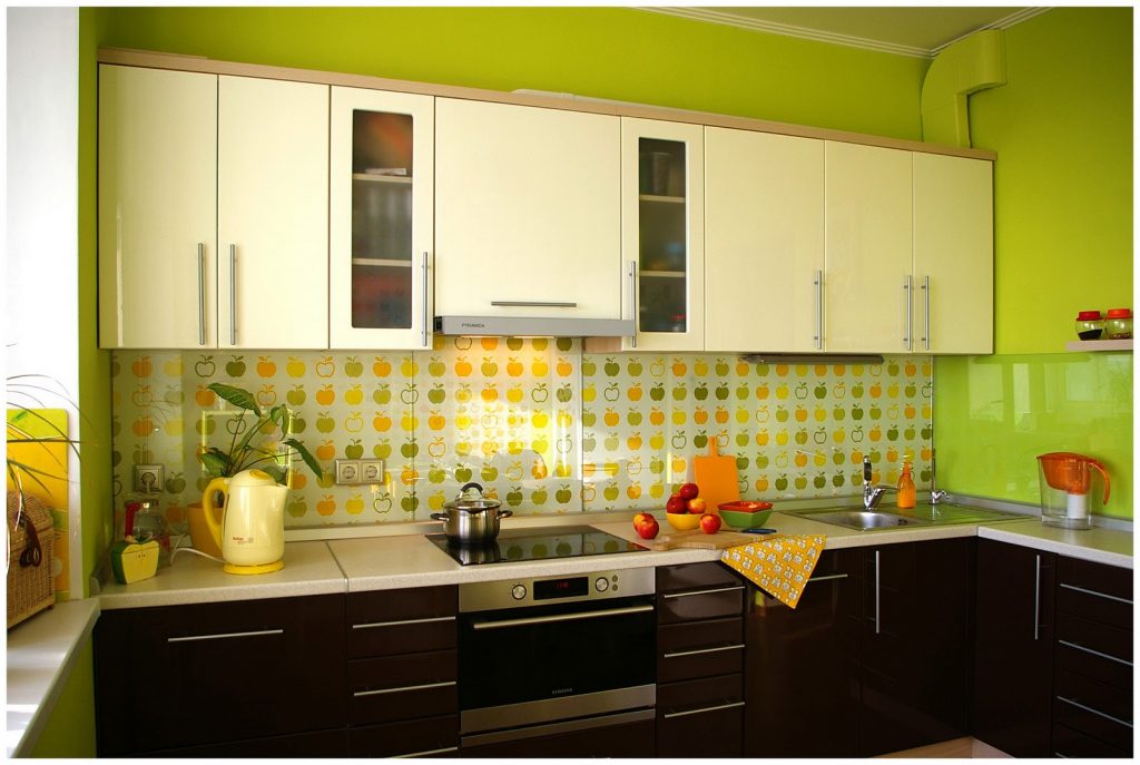 В маленькой кухне 7 кв важно защитить не только зону готовки, брызги могут попасть и на ближайшие поверхности — поэтому мыть их придется часто.