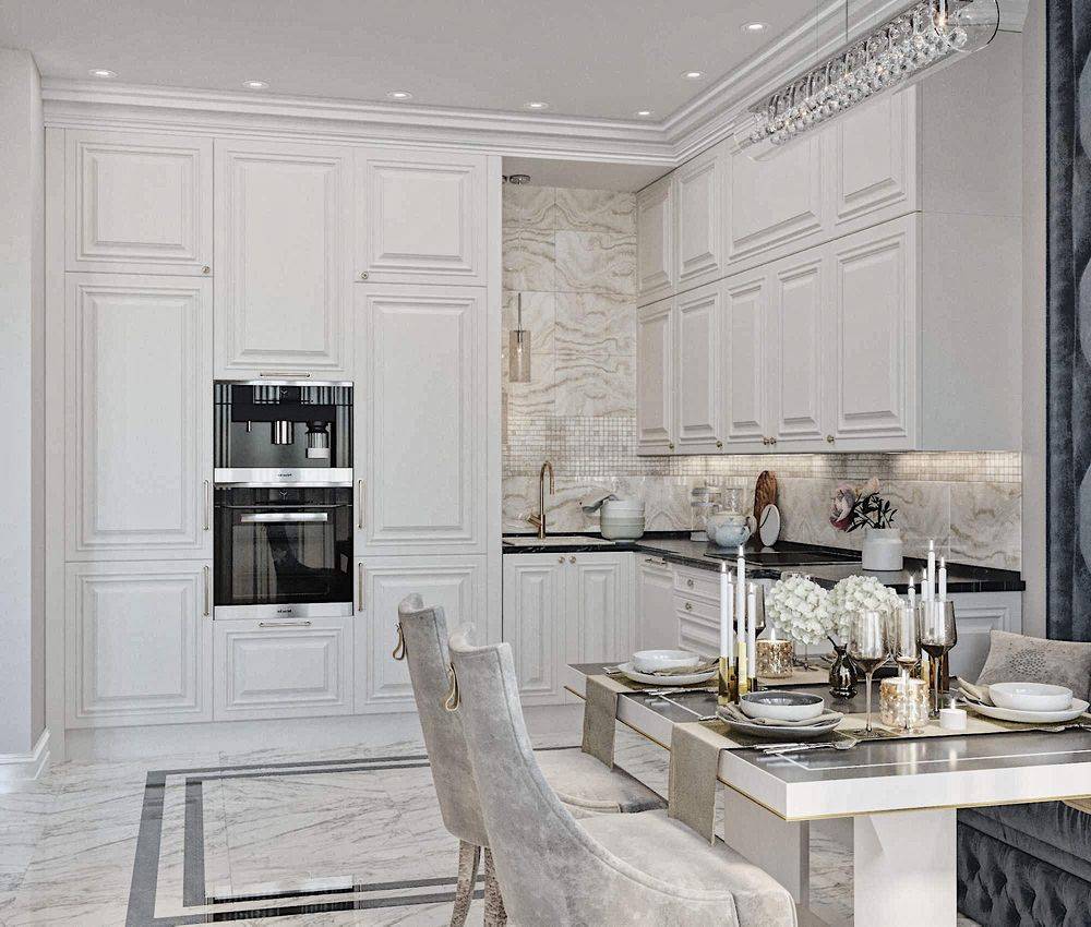 Минус только один – в кухонной зоне белизна быстро потеряет свою свежесть, поэтому будьте готовы к регулярному протиранию.