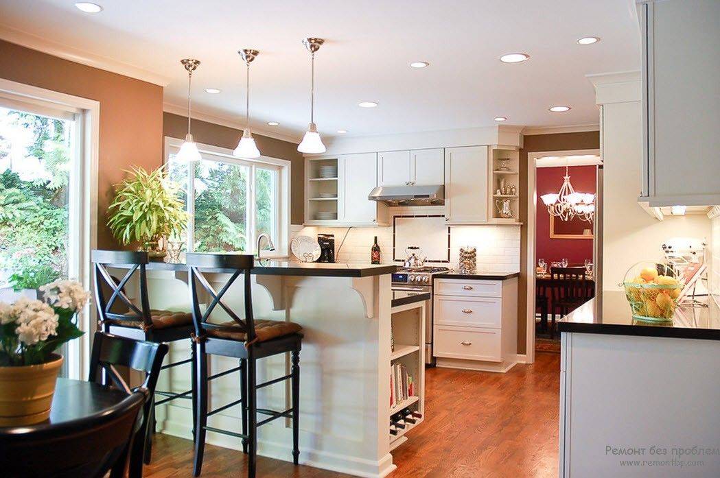 - При желании можно превратить такую кухню в модный уголок, дополнив барной стойкой или островком.