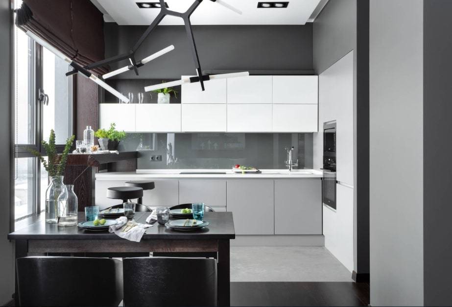 - за барной стойкой небольшой кухни не получится разместить более четырех человек. Поэтому она не подходит для празднований и семейного обеда.