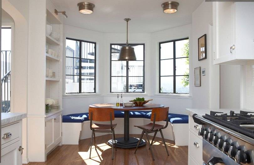 Поскольку большинство современных кухонь обычно драпируются нейтральными оттенками, а также большим количеством белого цвета, сиденье с окном может легко вписаться в эту схему с яркими сезонными цветами.