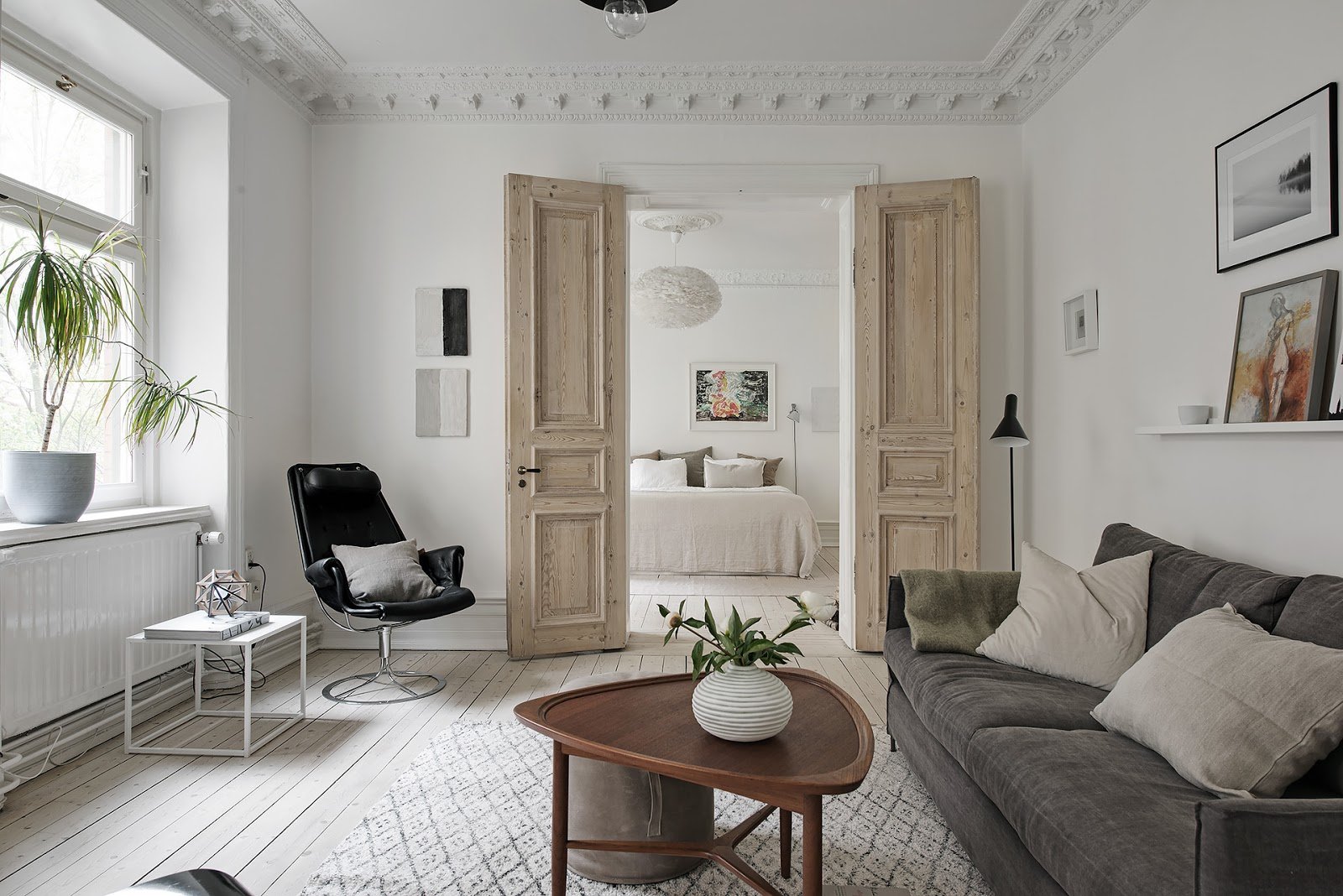 Простой и незатейливый, но очень современный стиль сканди непривередлив к материалам. Соблюдая общий дух практичности и лаконичной функциональности форм, присущей скандинавскому хюгге, сюда можно внедрить старый потертый стол или скамью, осветительные приборы и различный декор.
