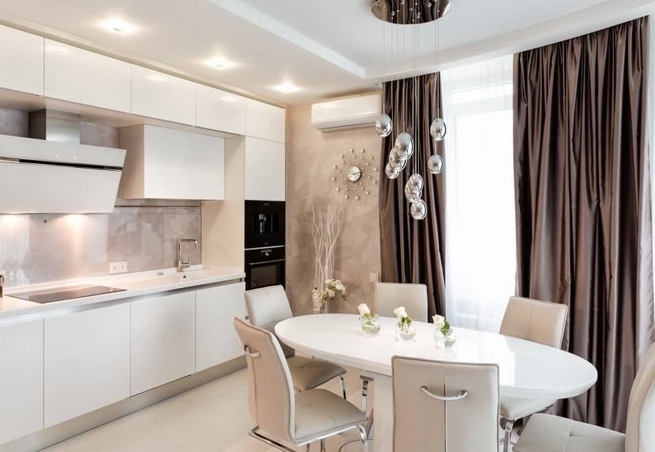 Следующие момент: кухня и гостиная зона должны будут оформлены в едином стиле, поэтому, либо придется подстраивать дизайн одной комнаты под дизайн другой, либо делать ремонт в обоих помещениях.