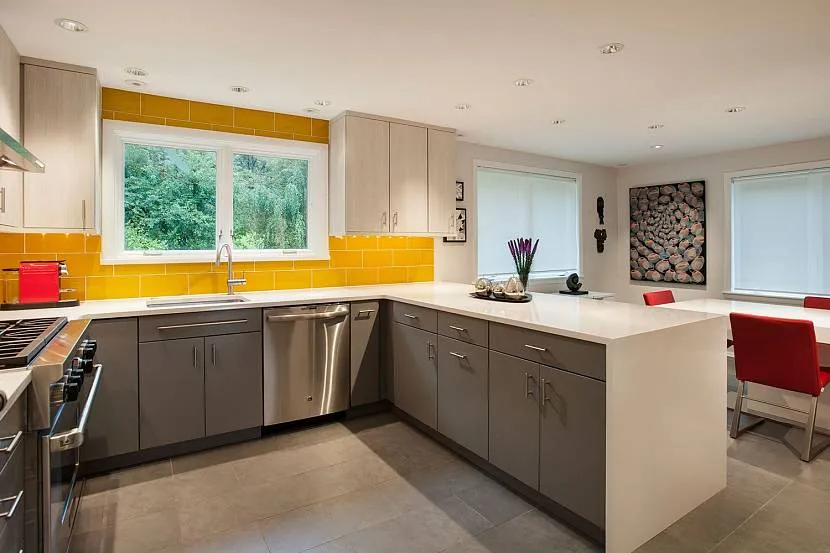 Не делайте П-образный наушник ярким акцентом. Из-за своего размера внутри может быть слишком много ярких цветов. Роль акцентов лучше доверить более мелким элементам: фартуку, шторам, картинам и так далее