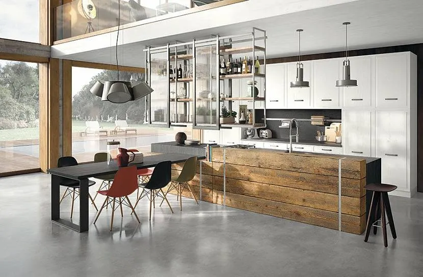 Благодаря собственной формы и комбинации, остров на кухне, как мы уже говорили, занимает намного меньше места, чем отдельно стоящая островная конструкция.
