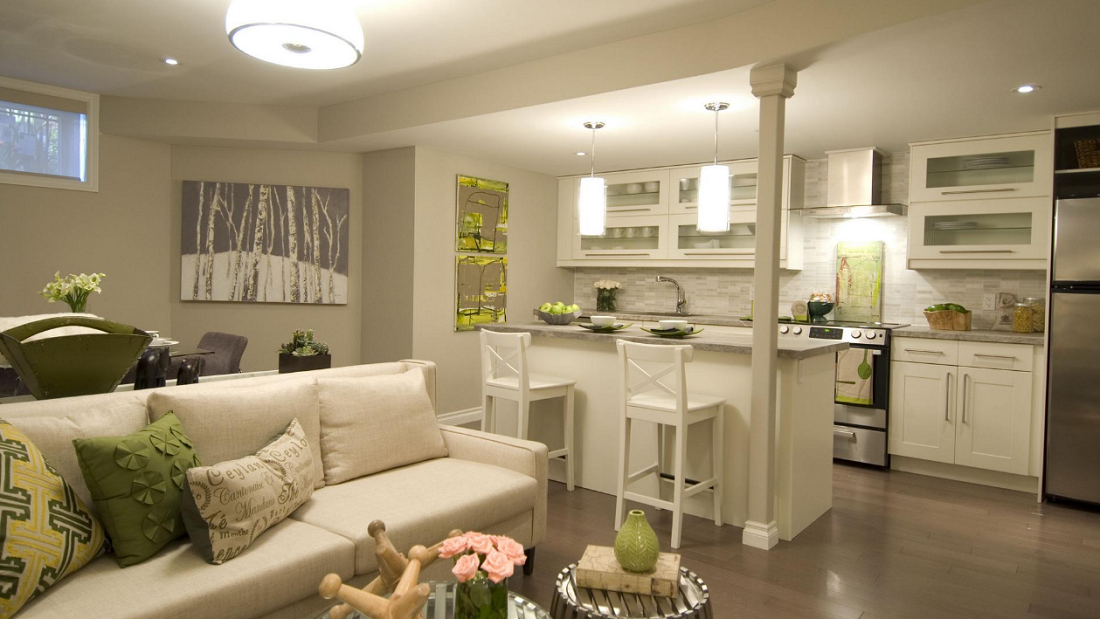 - В кухне и гостиной освещение должно быть ярким, а на их границе слабым.