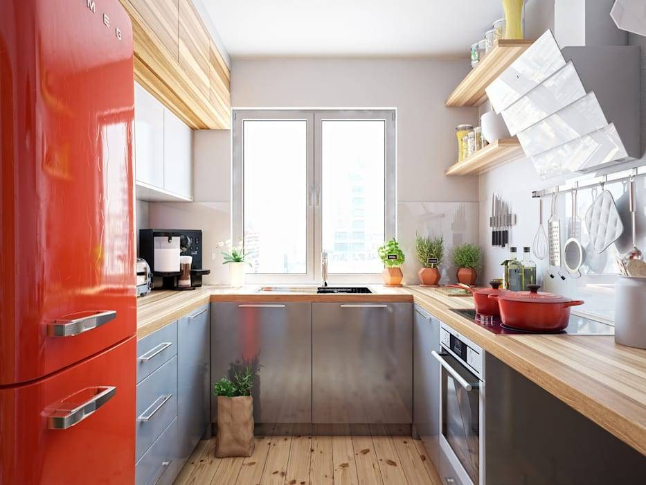 Желательно, чтобы в комнате было 1-2 больших окна и высокие стены. Обязательный атрибут кухни – мощная вытяжка, которая не позволяет запахам готовящейся еды распространяться в смежные помещения.