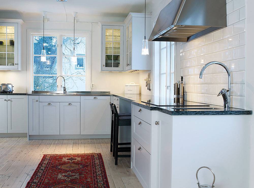 Кстати, традиционное место для расположения мойки – у окна или на острове, что недостижимо в условиях большинства обычных квартир, но вполне осуществимо в частом доме. Сама раковина, как правило, имеет большие размеры, возможно с 2-мя чашами, и выполнена из керамики или камня.