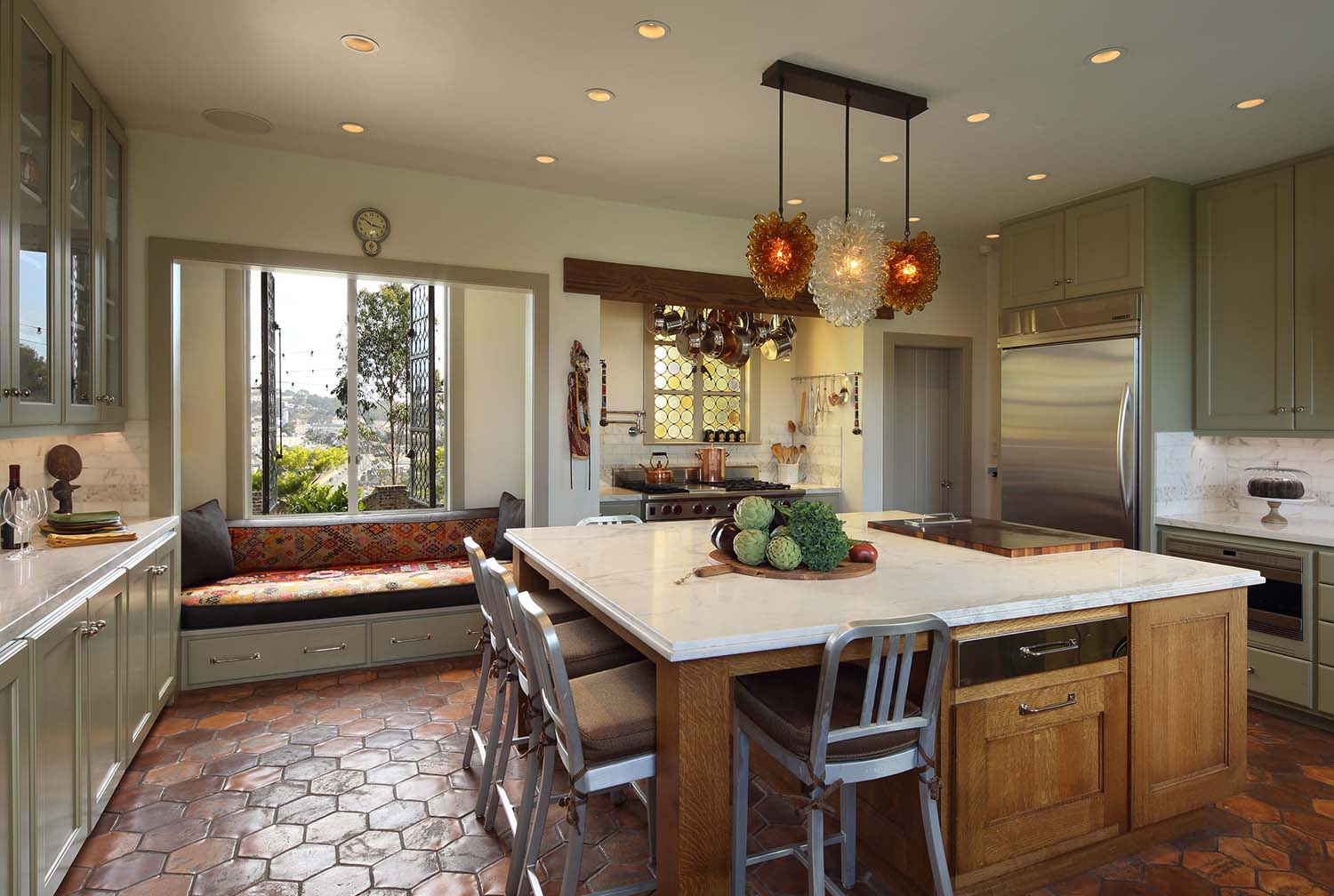 Просторное помещение на первом этаже частного дома, окнами выходящее в небольшой сад, изящно и со вкусом обставленное — такой видится нам кухня семьи Бернэм в фильме. Давайте поговорим об особенностях стиля дизайна этой кухни — американской классике.