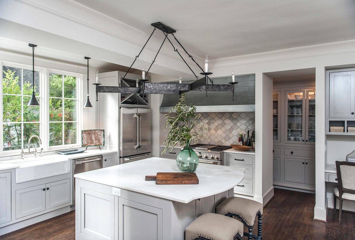 Часто в американском интерьере можно встретить подвешенные кастрюли и сковороды прямо над островом.