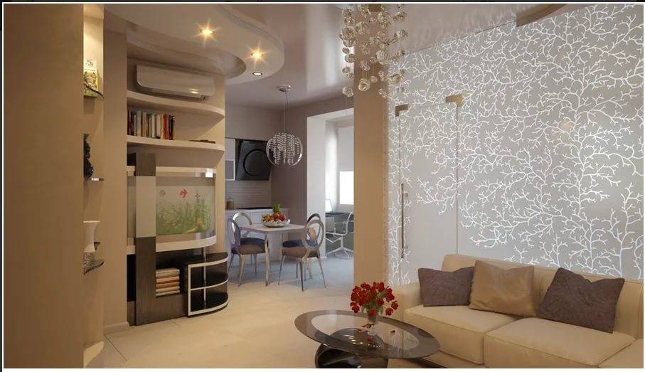 применение разных материалов отделки для отдельных пространств. К примеру, в гостиной можно использовать декоративную штукатурку или красивые обои, а на кухне – керамическую плитку;