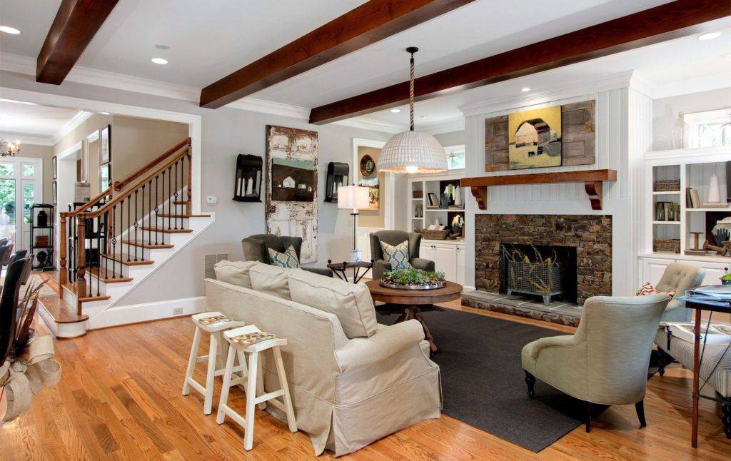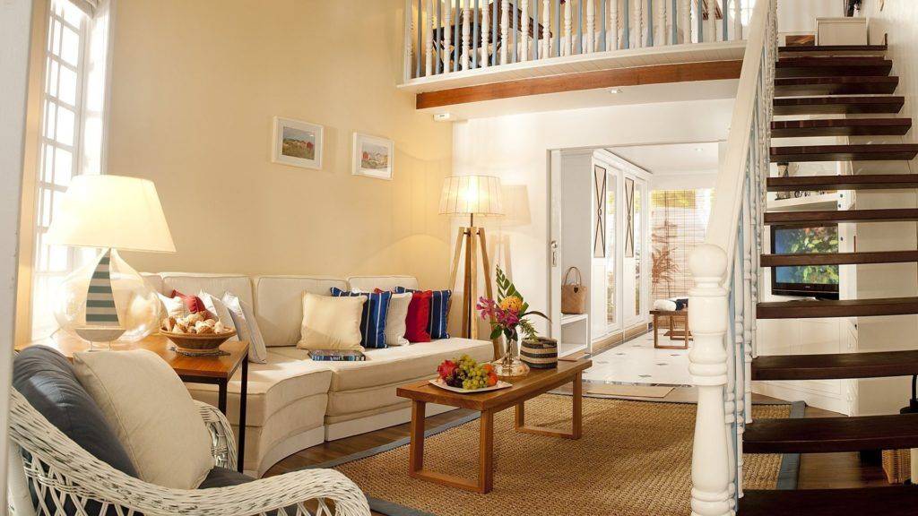 Лестницы на второй этаж в гостиной, влияют на полное изменение характера комнаты и ее целевого назначения. Их присутствие в общей комнате имеют как положительные, так и отрицательные нюансы.