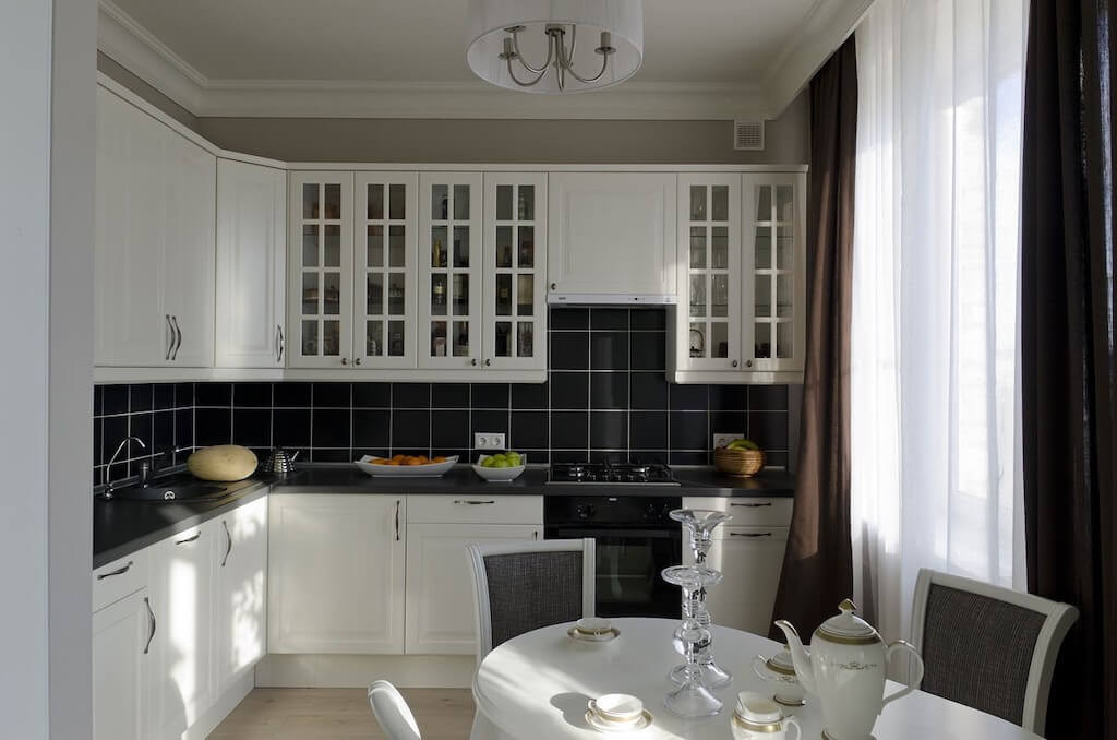 Да, кухню в направлении рококо или барокко дешево не спроектируешь, но если посмотреть на современную классику, отличающуюся своей простотой, то повторить интерьер можно при ограниченном бюджете.