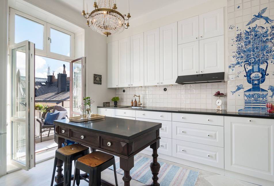 Зону фартука в этом случае лучше оформить нейтрально, ограничившись панелями или плиткой без яркого дизайна. Но если фотообои и другие акценты на стенах отсутствуют, вы можете привлечь максимум внимания именно к этой части кухни.