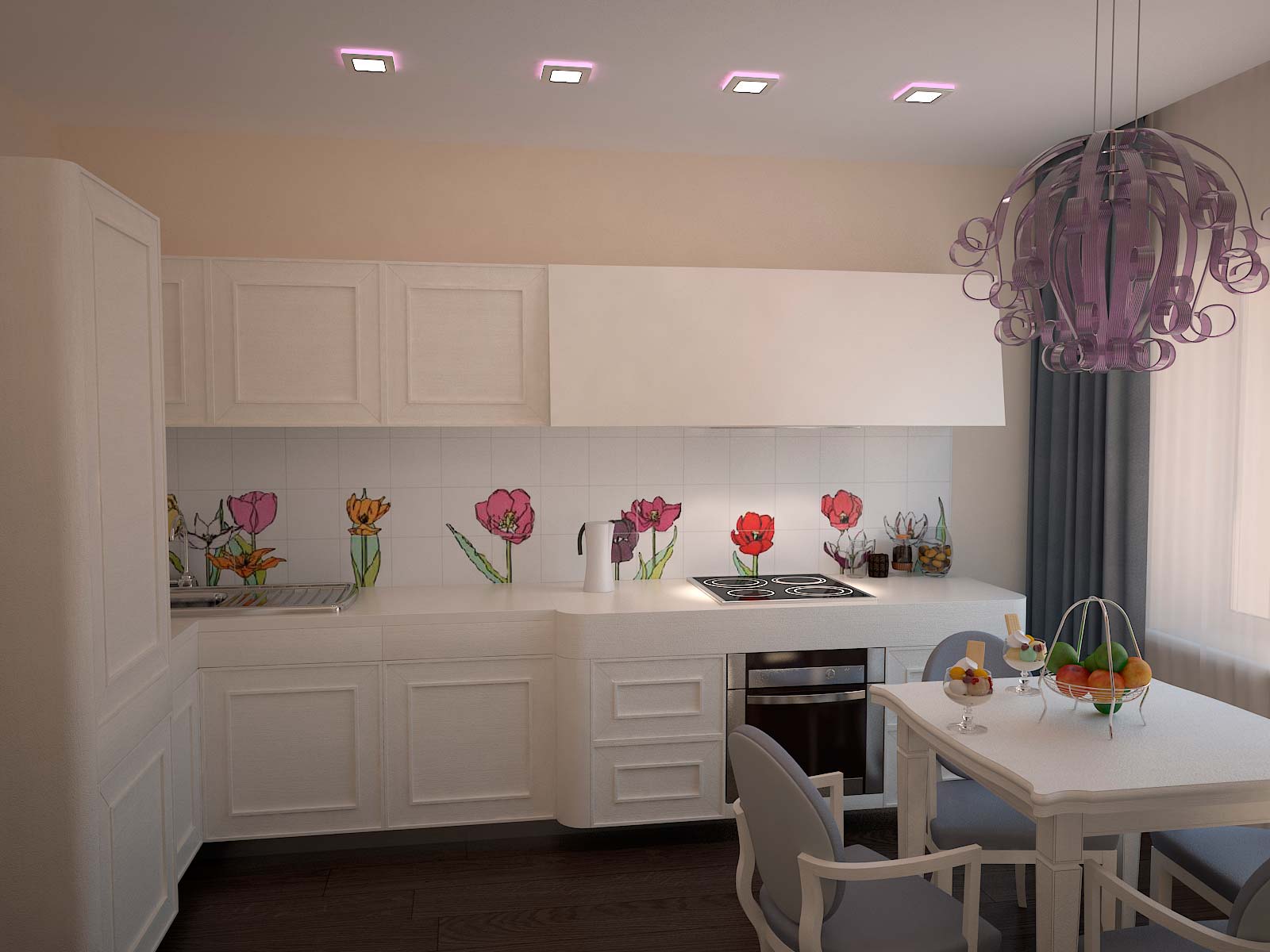 Помните, при обустройстве маленькой кухни желательно не использовать холодные оттенки синего, фиолетового, голубого – они отрицательно влияют на процесс пищеварения и придают помещению некую схожесть с ванной.