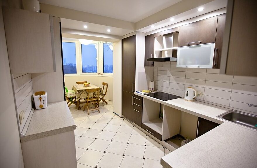 Рассмотри возможность увеличения площади кухни. Возможно, к ней примыкает лоджия или балкон – их можно присоединить к территории, утеплить и оборудовать там обеденную зону.