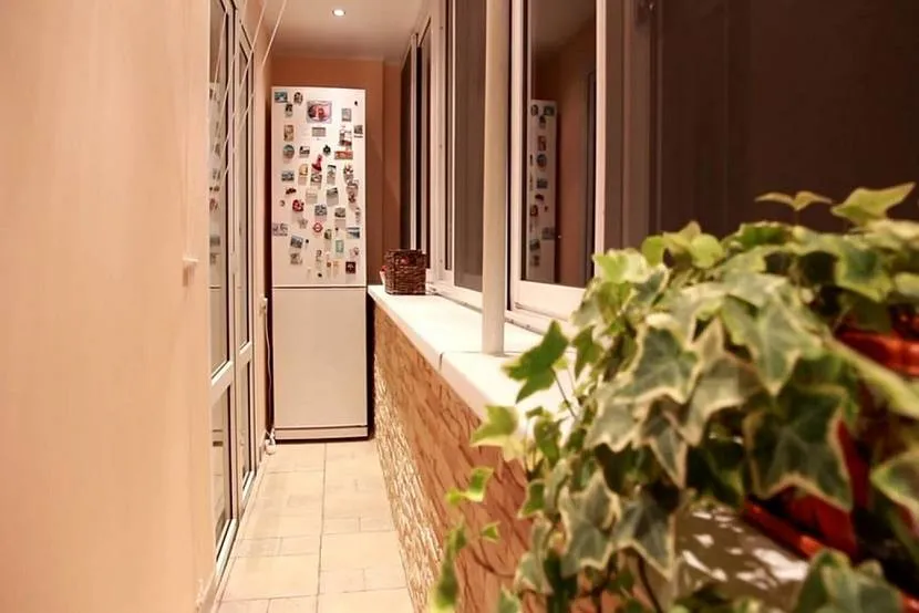 В застекленной лоджии оборудуют полноценную систему хранения. Перенос части мебели и бытовой техники поможет освободить полезную площадь на кухне в 8 кв. На балконе устанавливают: