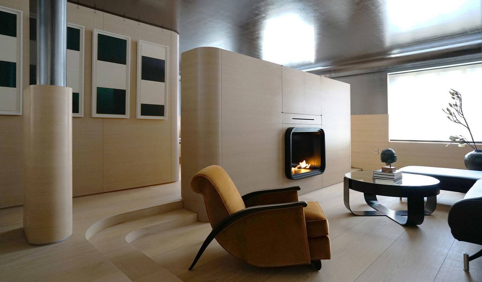Камин из камня гармонично будет сочетаться со стилем ар-деко