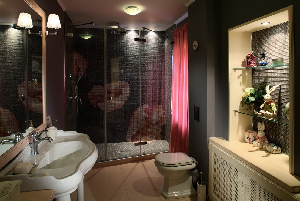 Санузел, особенно небольшой площади, нельзя перегружать лишними предметами. Но можно использовать уже имеющиеся для декоративного оформления. Дополнительные акценты: