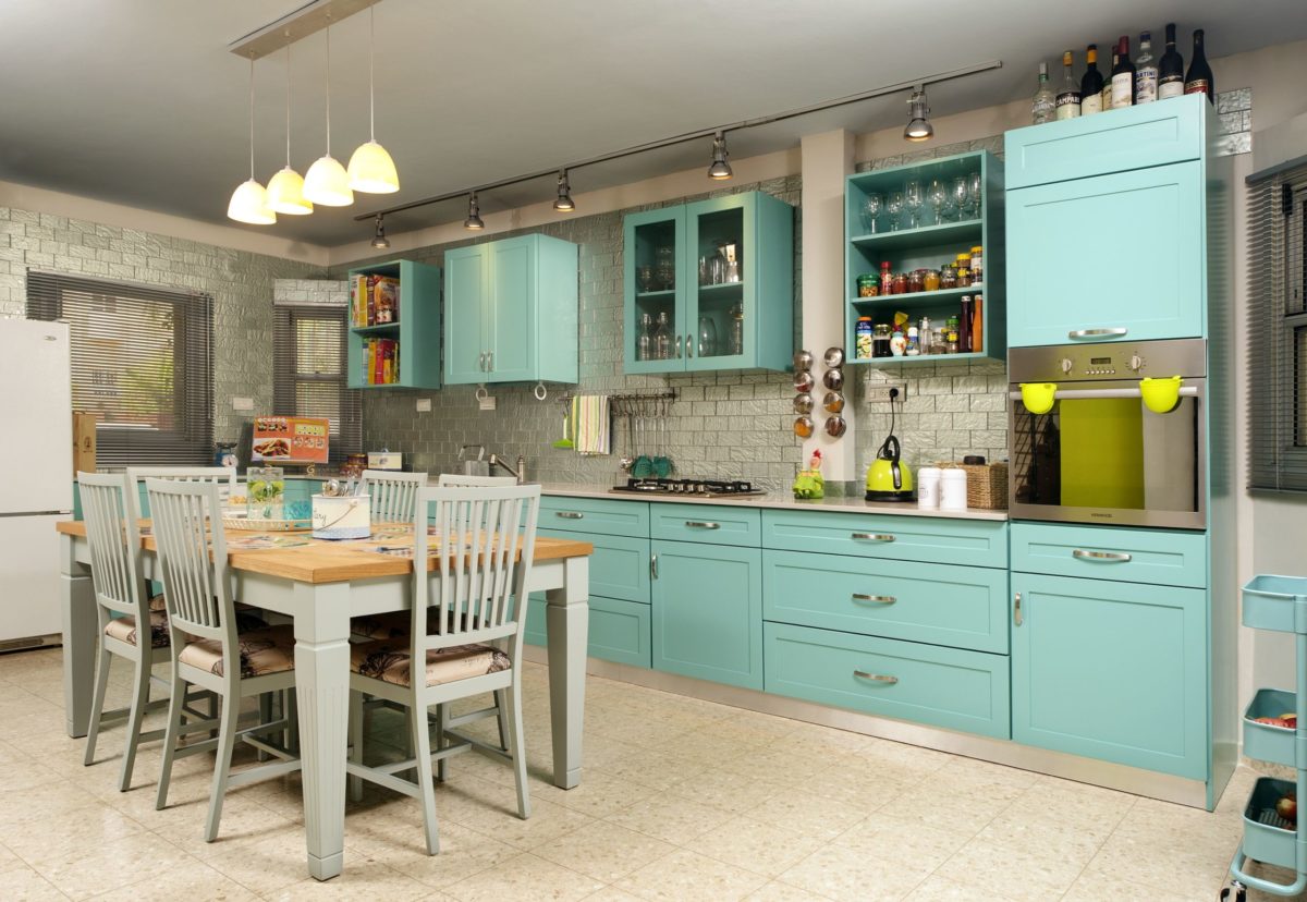 В ряде стилей можно применять оттенки, почти не встречающиеся в естественной природной среде. При создании кухонного интерьера в стиле фьюжн вы можете не ограничивать фантазию. В таком оформлении будет уместен мятный оттенок, лиловый, бирюза и множество других.