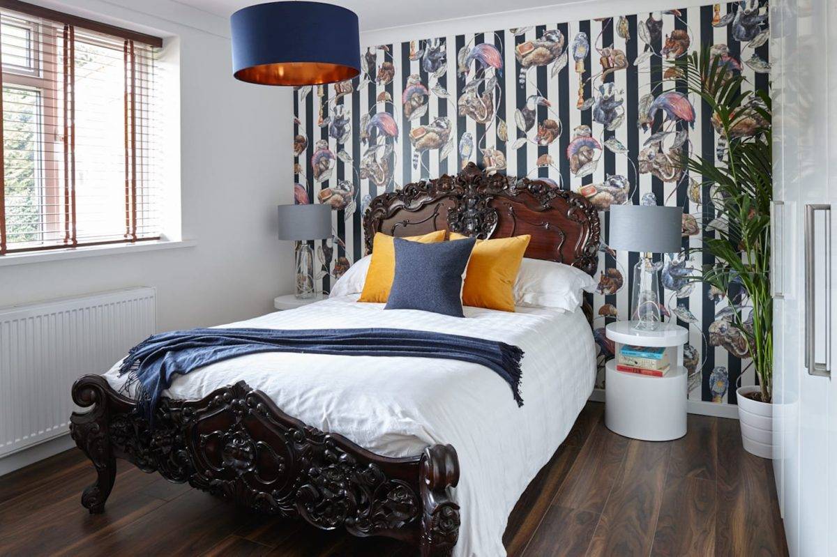 - оригинальное украшение стен (это могут быть старинные бронзовые статуэтки в сочетании со шкурами животных и ярким разноцветным принтом).