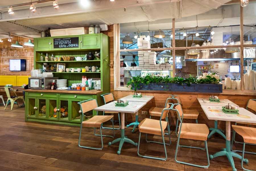 - современный – стиль пиццерий, закусочных, кондитерских и т.п.;